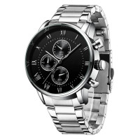 Fashion Classic Business 3 Sub Dial Chronograph Waterproof Stainless Steel Mens Quartz Wrist Watches