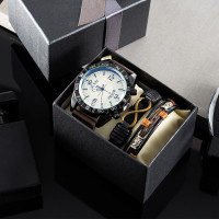Hot sale Business Sports Casual Luxury Calendar 3 Piece Set Gift Box Cowhide Bracelet Fashion Wrist Quartz Watch For Men