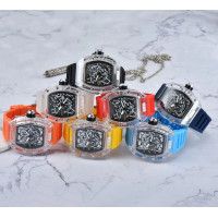 OEM Sports Luminous Silicone Iced Out Stainless Steel Back Plastic Case Wrist Quartz Watch For Men